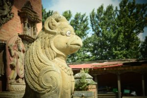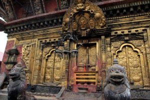 The temple has a magnificent golden gate with intricate carvings of Garuda, Laxmi, and Vishnu. Only temple priests get access to the Vishnu sculpture inside the main shrine. Hindu gods and fantastical animals are carved into the temple’s vibrant exterior. Buddhist pilgrims also travel to Changunarayan to worship Hariharihari Vahana Lokeshvara, the primary deity.